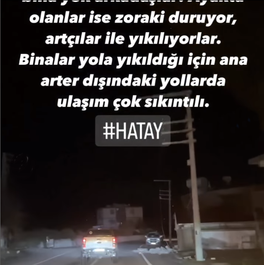 Тази група разнася храна,вода и всичко необходимо в района на Хатай и Газиантеп.Ходенето по пътищата е много сложно и няма думи, с които да опишат това, което срещат..