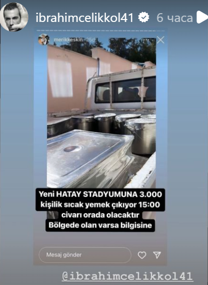 След тях и Ибрахим е заминал за Хатай . На клипа Ибо се  насочва към мястото на засегнатите и е написал "Натоварихме камиони и превозни средства на пътя. Време е да тръгвам" 👏 🤲💯❤👊