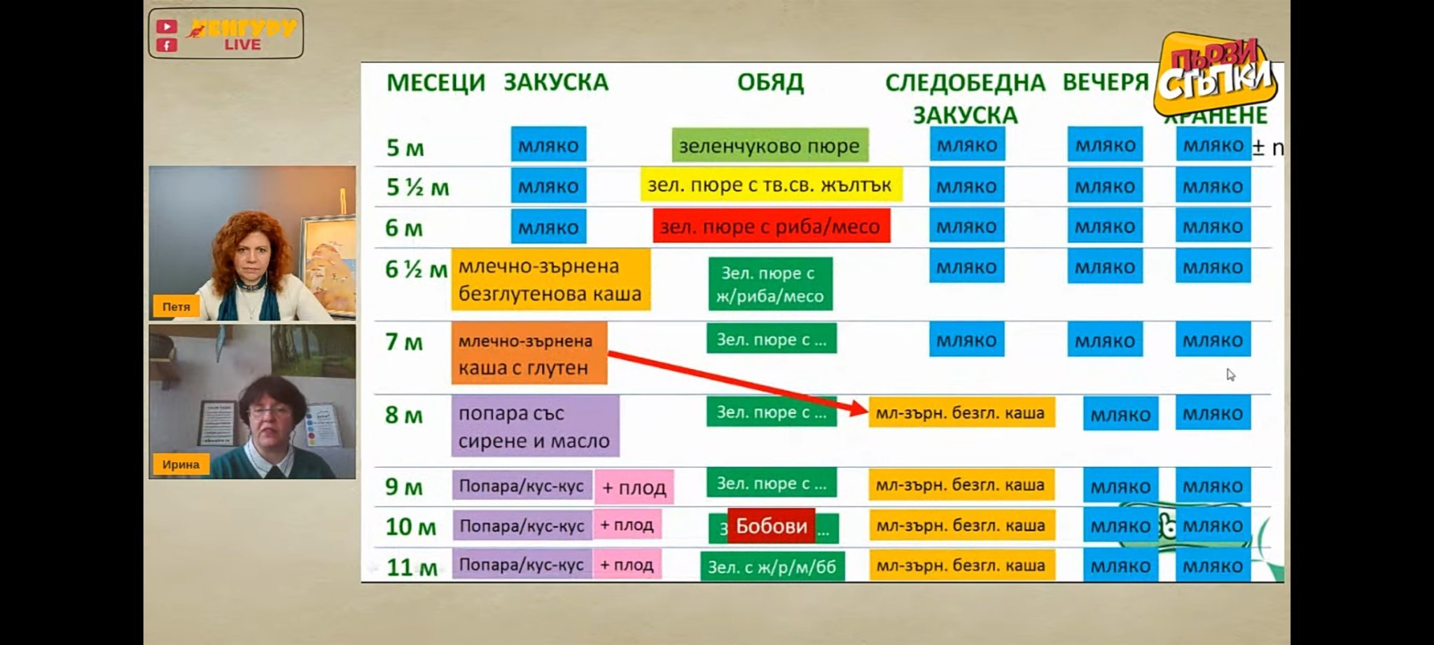 Ако това е схемата на захранване на д-р Владимирова не ми харесва. Мислех да и гледам семинарите, но картинката ми е достатъчна да ме откаже. Не ми харесва плод чак на 9м. Не съм съгласна и с кашите всеки ден. А всеки ден попара или макарони за закуска още по малко. Това, че толкова рано замества закуската ми е друг проблем. Имам чувството, че по нейната схема цял ден храня детето с каша и попара и веднъж малко зеленчук с месо. Лично аз съм против закуската от попара със сирене, въпреки, че каката пък друга закуска не признаваше. Баткото пък не можех да го накарам нищо тестено и каша да яде. Сега ще видим малката какъв чешит ще е. Ще си карам по моя метод на захранване.