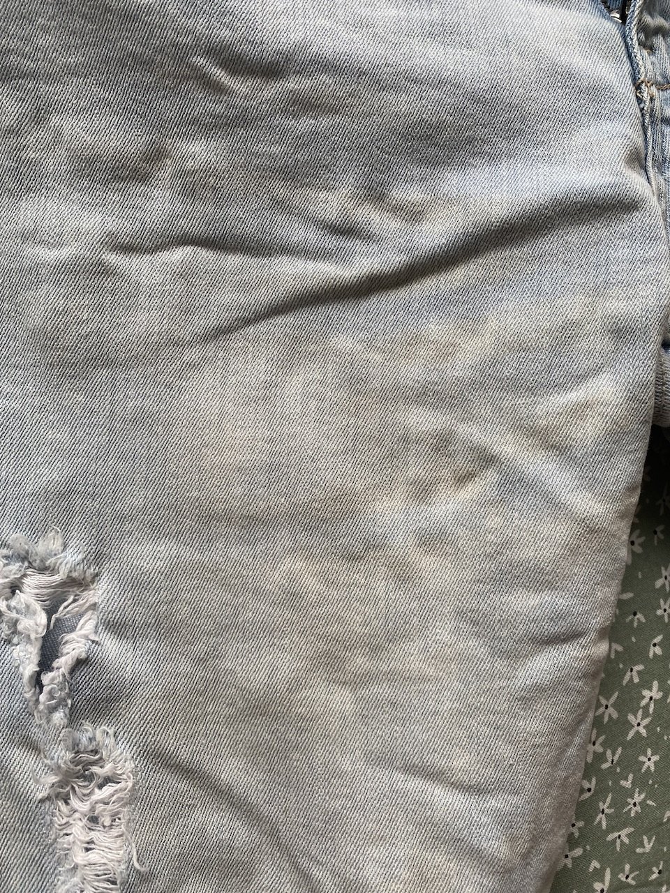 Едни светли дънки сравнително нови ми седят на жълти ивици, които не се махат след пране, имате ли идеи дали може да се оправят? С нищо не са заливани, нямам идея как са станали. По цялата дължина на крачолите е така
