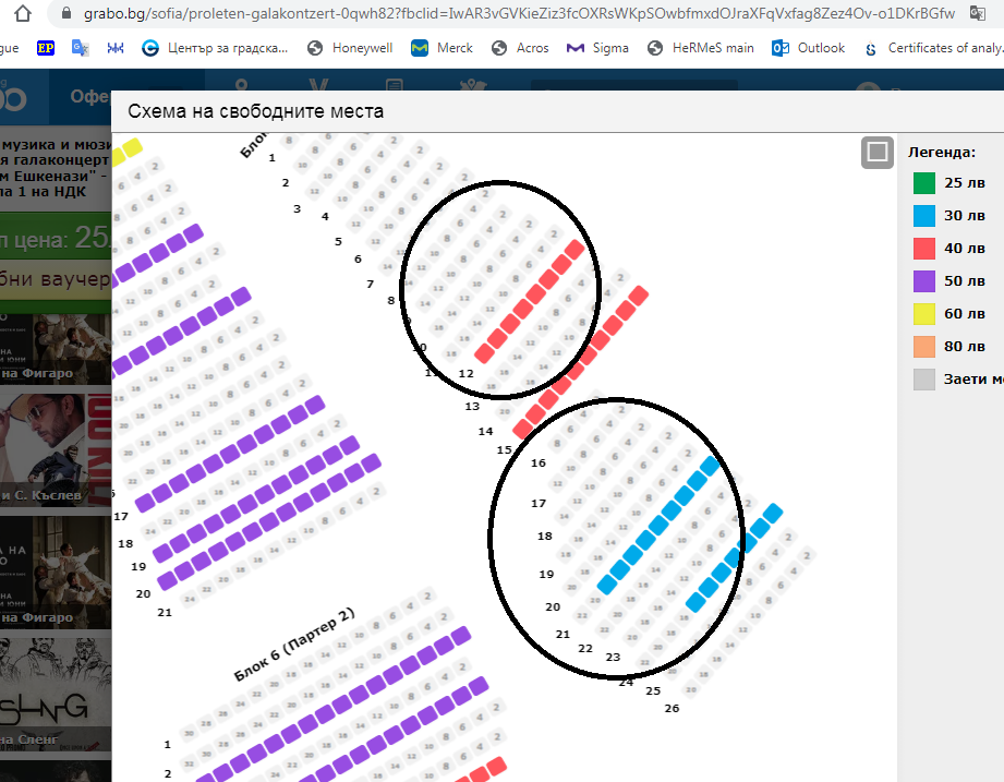 закупуване на билет от Грабо, за НДК... има ли опция да избереш места или е след плащането? Тъй като има свободен ред а през ивентим са единични в този блок. (червен и син дясно)