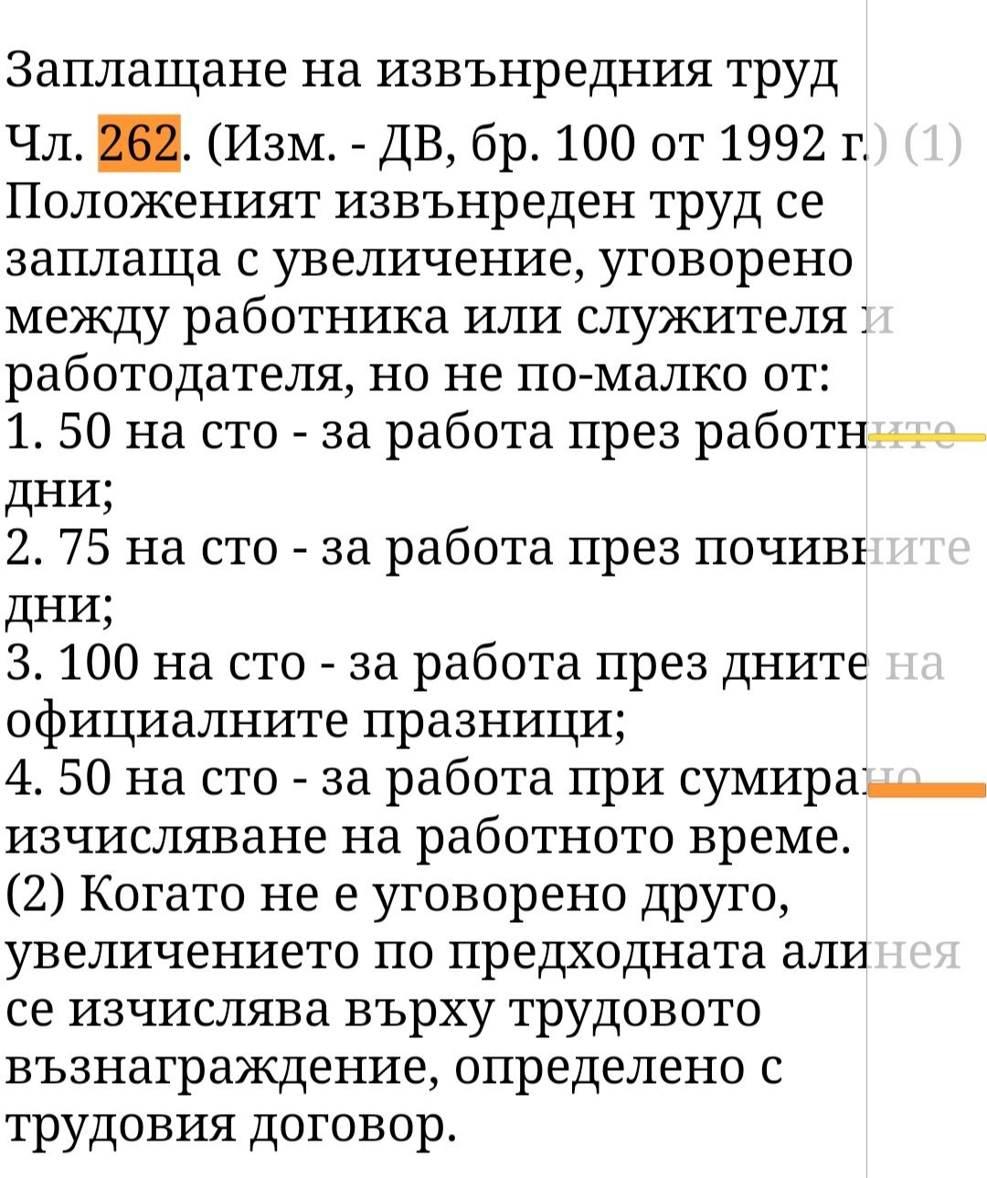 Да, законът е троен надник, или двоен плюс ден компенсация. Моите впечатления са, че дори колеги в моята фирма, 80% от хората не са прочели КТ, сещат се за него едва ако ги уволнят или съкратят.