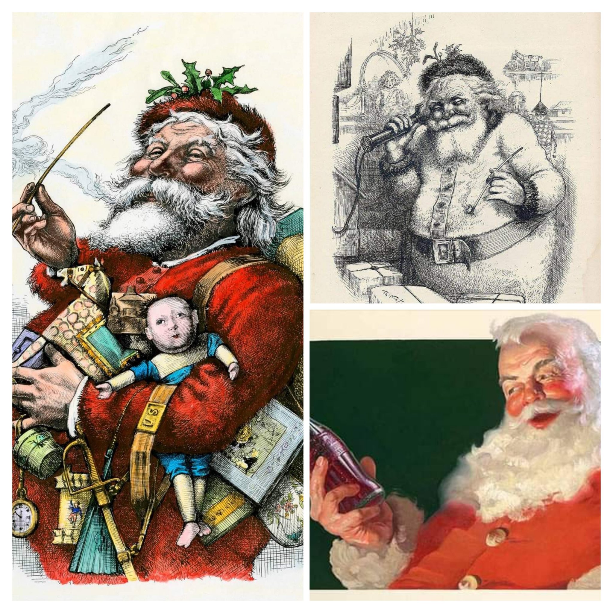 английския Father Christmass,  дебел бишоп, който има бяла брада и носи червен костюм и Холандския Синтер Клаас, дебел елф, който се спускал по комините да раздава подаръци на децата.