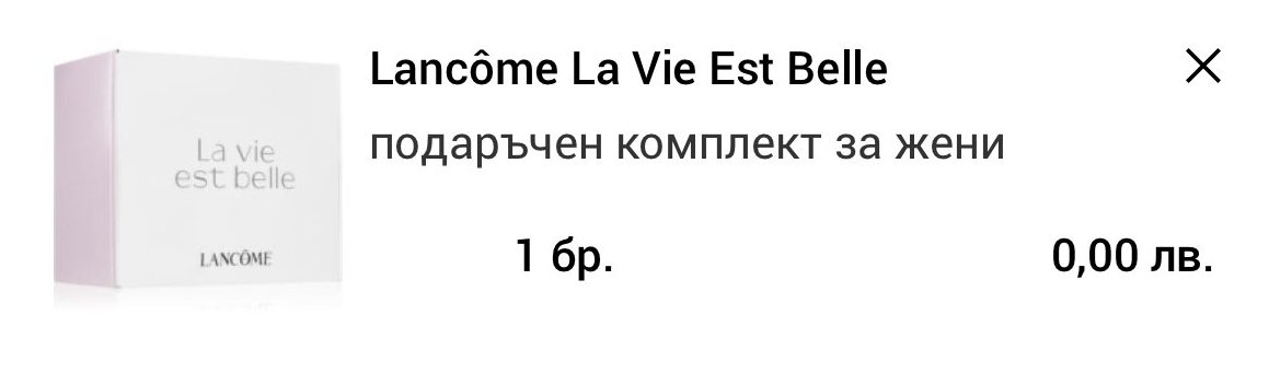 Получавала съм (привидно) същата кутийка, имаше няколко (мисля три) мостри на ралични La Vie Est Belle варианти, може да бъркам кои точно, но май бяха оригиналният, интенс и Oui.