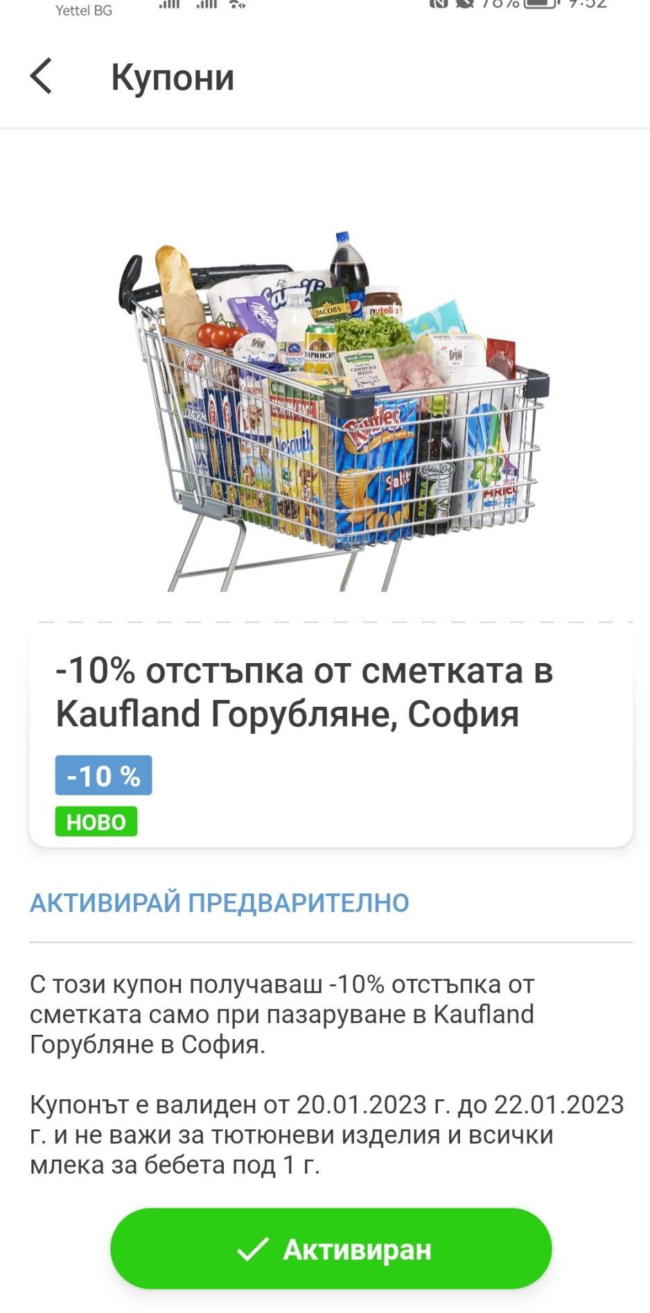 Ако някои иска да се възползва от - 10% отстъпка за Кауфланд Горубляне да пише, купона е активиран, важи до днес.