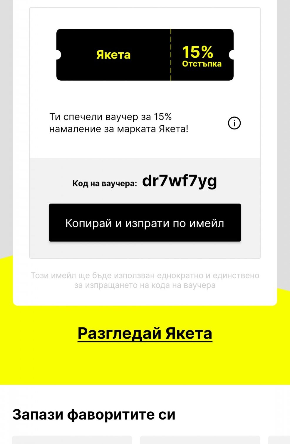 Търся код за якета, че мъжа ми проплака , че и той искал. На мен вече ми е неудобно да си поръчвам, нека му хвърля прах в очите и да продължавам с моята слабост Simple Smile