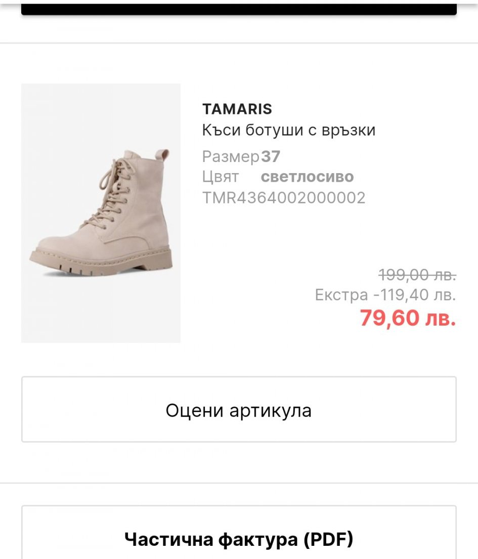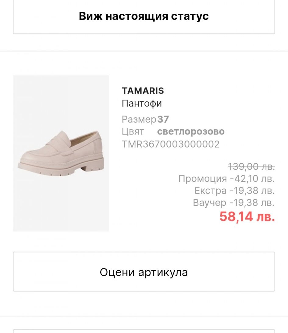 Тези тамарис са много удобни, цвета си отговаря едната обувка е разтъпквана обаче личи си. Сигурно няма да успея да ги нося този сезон, защото имам такива, подобни, които са още здрави, но все пак ще ги задържа, защото следващата зима ще търся такива и няма да мога да си намеря на тази цена удобни.