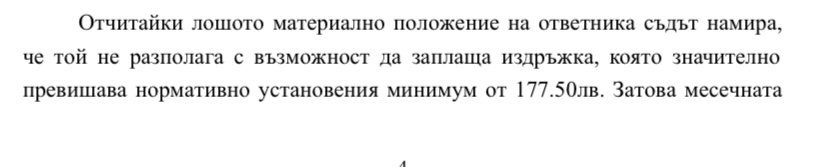 След като сте единодушни, че минималната издръжка е 195 лв се надявам, че няма да бъде удовлетворено искането.