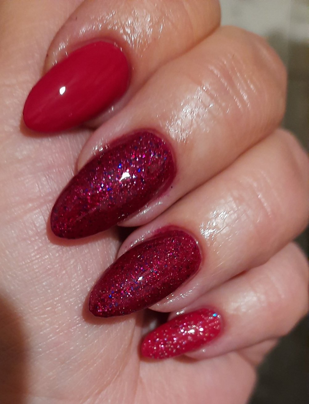 Леко заоблих с ножичка овала, за да ми паснат по-добре. Реално използвам 4 размера- един за палците, един за следващите три пръста и две за кутретата😅 (*на дясното плочката ми е леко по-широка).