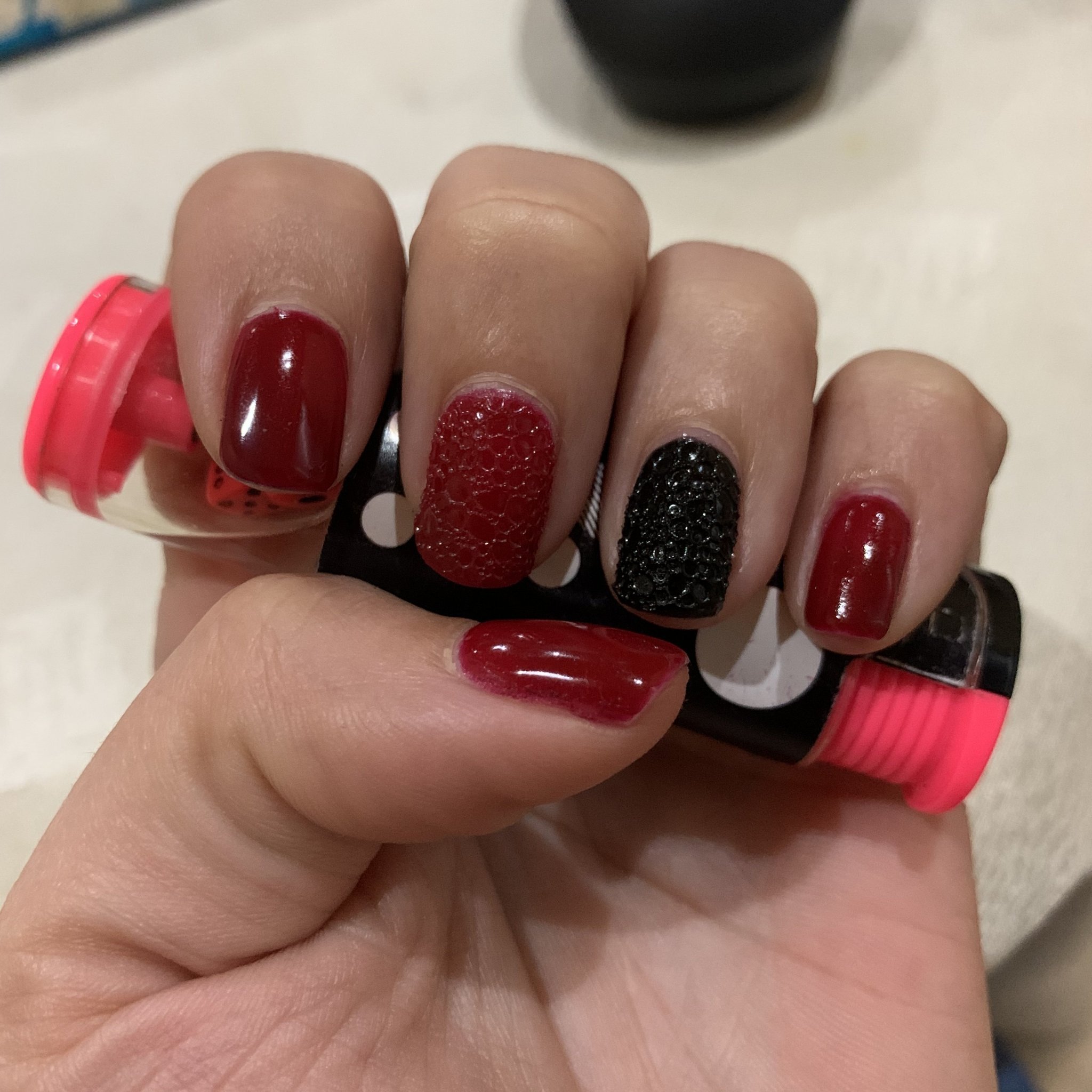 Някой питаше за маникюр с пяна,аз си правех редовно преди. Много лесна и бърза декорация си е.