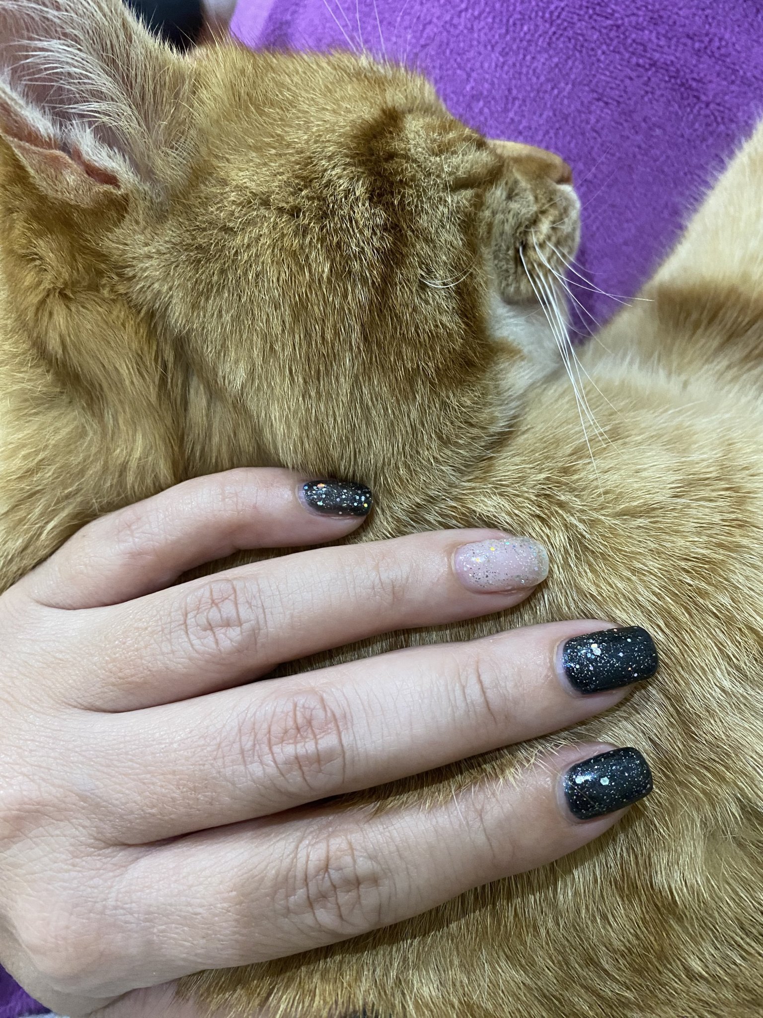 Много хубави снимки сте качили отново. Браво на вас. Аз нямах нито време,нито желание тези дни да си правя нещо,че детето беше сериозно болно и не ми се пипаше нищо. Набързо си сложих един черен и отгоре брокатен и тъй. Даже снимка нямах,ей ся щракнах с котарака. 😂
