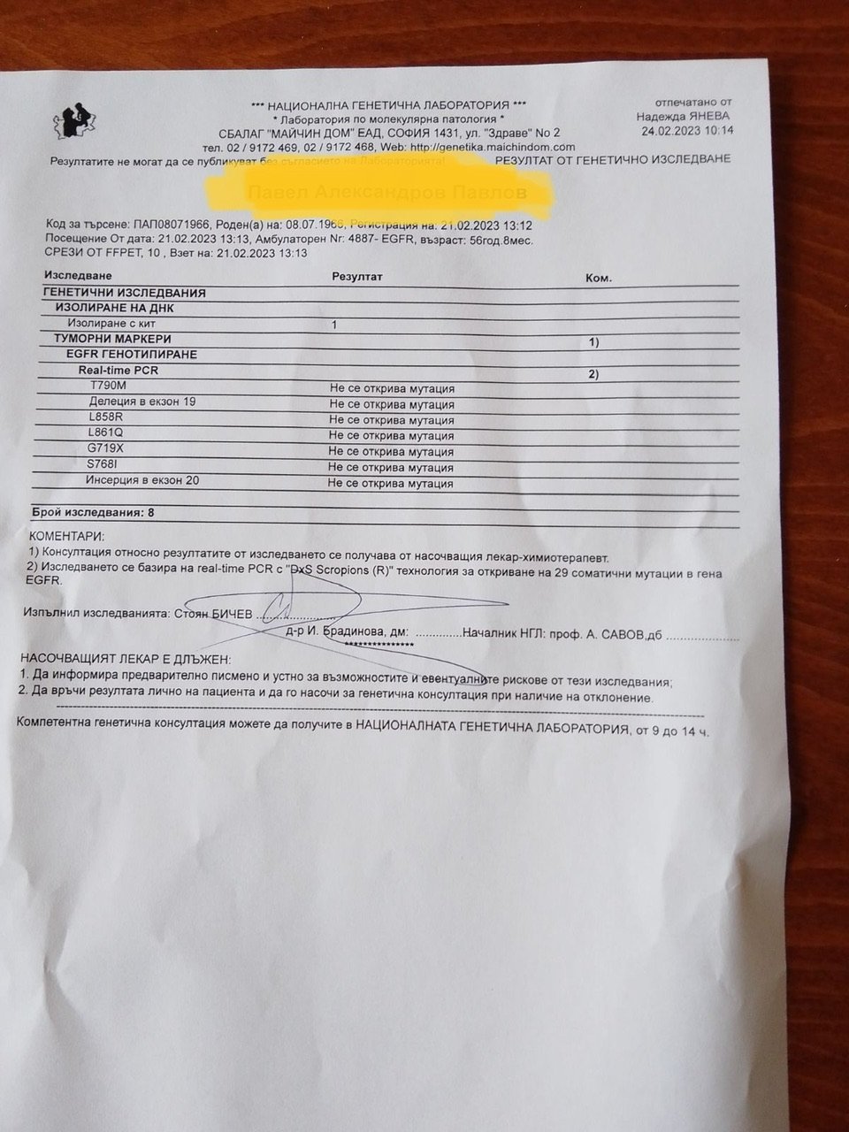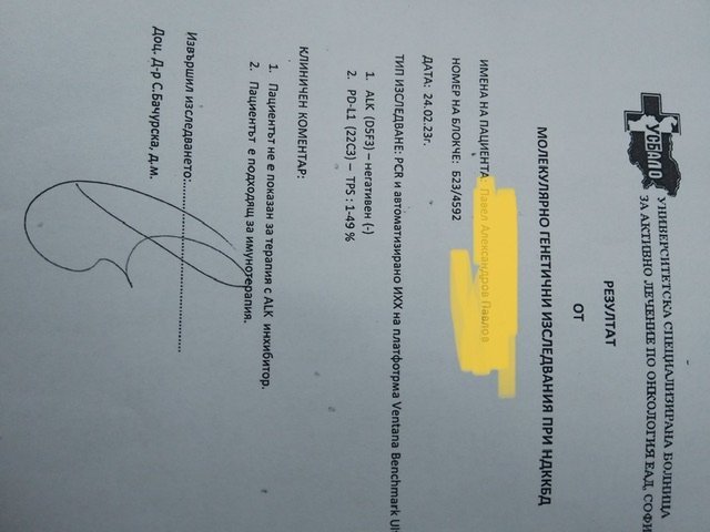 Няма мутации в EGFR и ALK/ROS1 ,това са мутациите за който НЗОК,заплаща лечението ,засега за другите ,за които има таргетни терапии ,не ги реимбурсира.