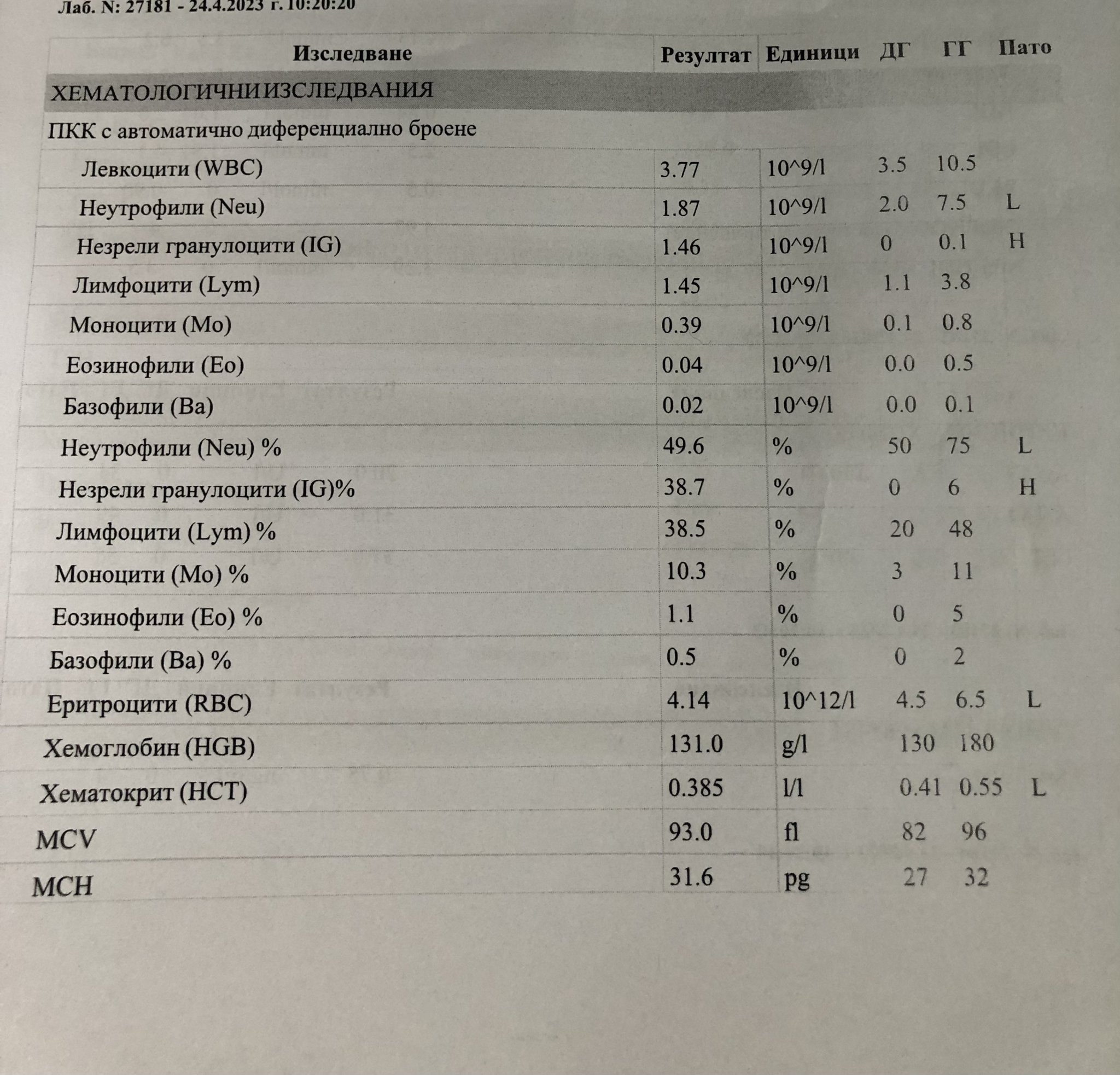 преди вливка не са му наред Хемоглобин, Неутрофили и Тробоцити. Не е като при таксаните.