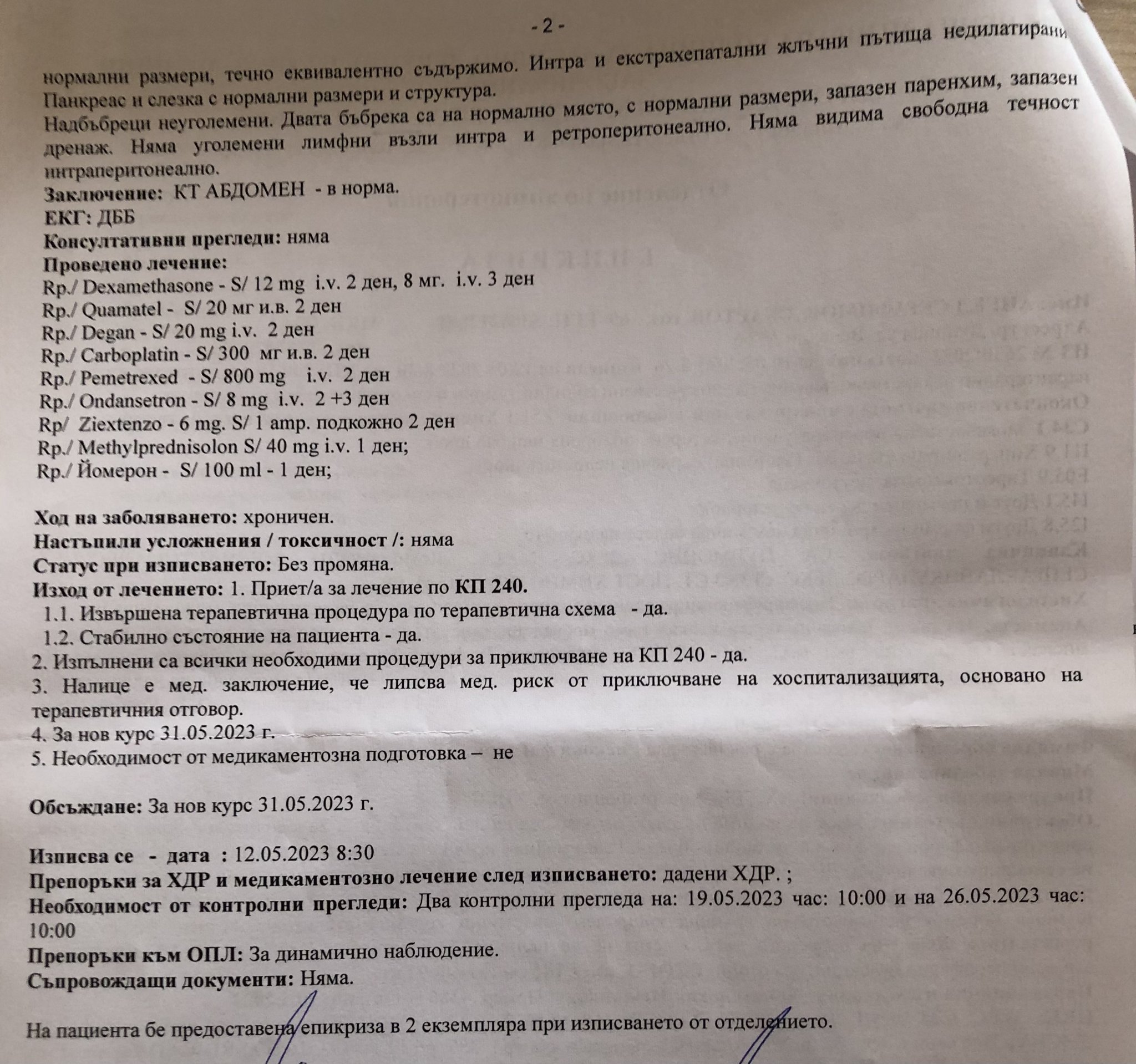 Иначе  продъжаването само с Пеметрексед си е по проткол. Него ще го понесе по-леко и то досат ,отколко с платината.