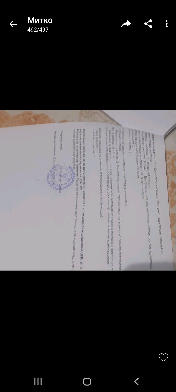 на която го насочват  да се яви ,след като му излязат резултатите за EGFR,ALK и PD-L1(те са пратили блокчето за изследване ).