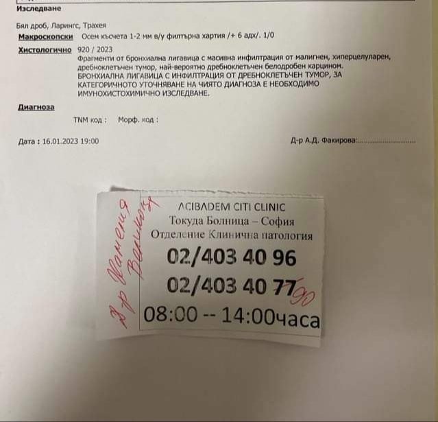 Здравейте добри хора, след прекарана пневмония покрай нова година вследствие на грип, на баща ми му откриха рак на белия дроб в Токуда.Много моля за някакви насоки и мнения за лекари, просто все още сме в шок и не знаем буквално на къде да тръгнем.Прикачвам резултатите, ако може да коментирате, изчетох всичко назад, виждам че сте много начетени и запознати с диагнози и термини. Само да вметна че преди година и половина дроба е бил чист, понеже баща ми претърпя сърдечна операция и бяха правени изследвания, в очакване сме и на последното изследване.Желая здраве на всички, благодаря че ме изчетохте🍀