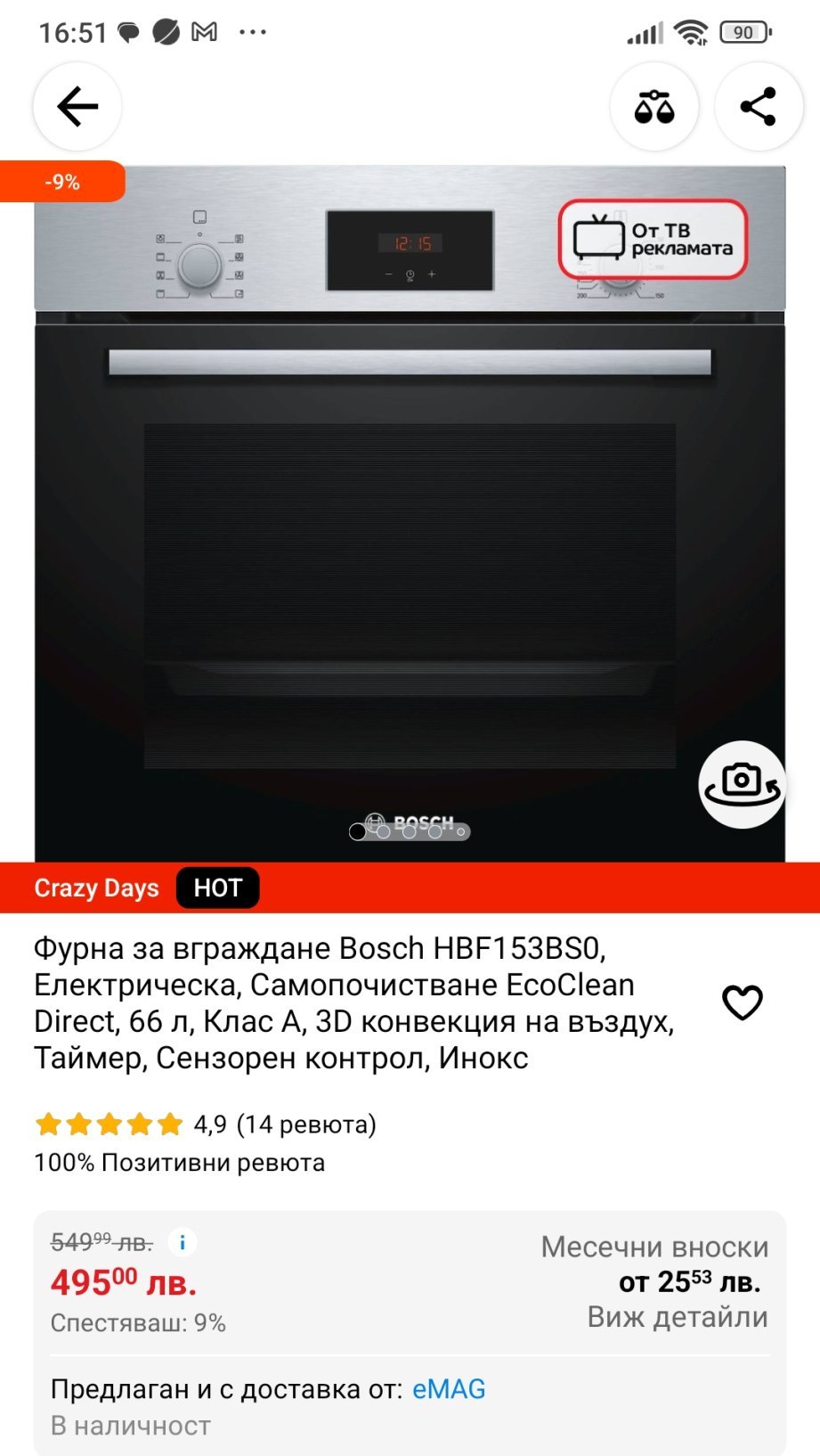 Ако някой си търси бюджетна фурна за вграждане, може да види тази оферта, важи до 8-ми октомври: