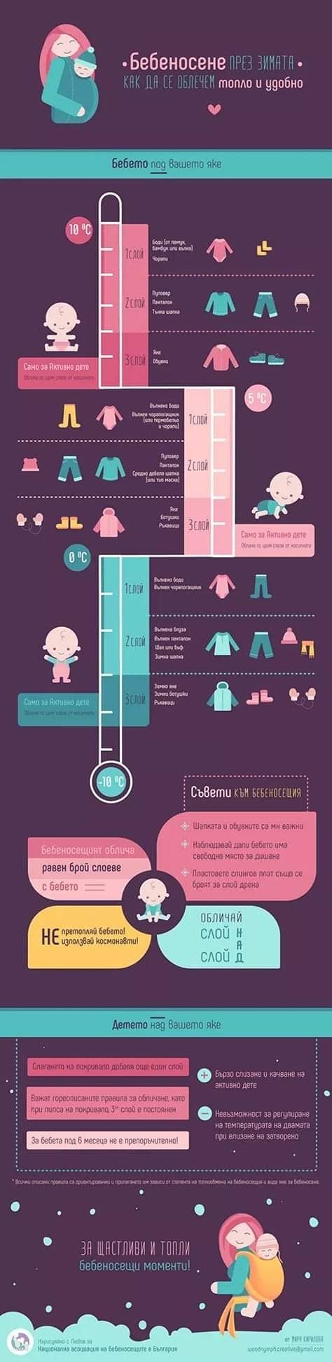 За слинга не се слага космонавт. Ще кача една снимка, че ми е в телефона с препоръки за обличане в слинг.