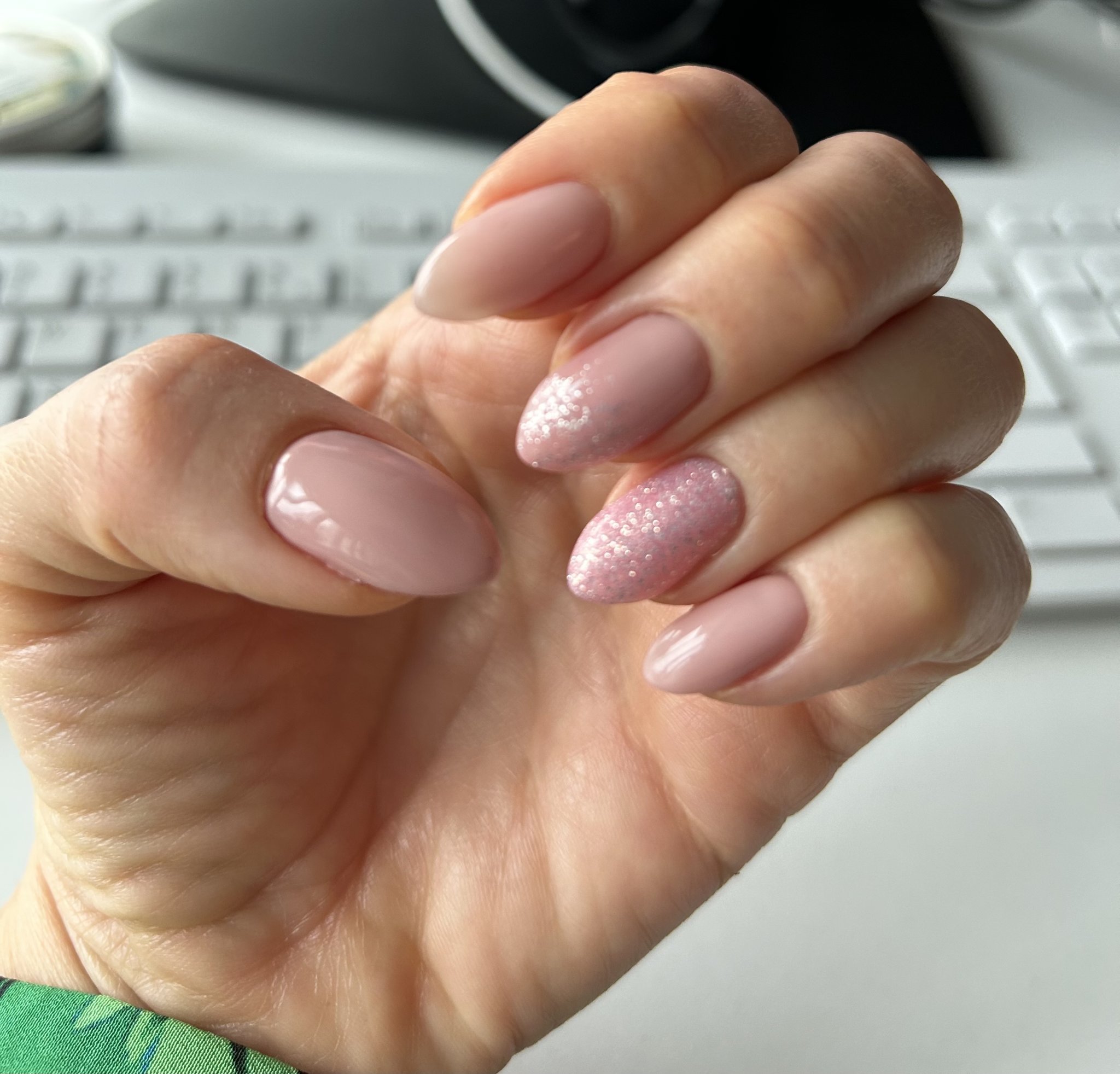 Ето и от мен един маникюр, макар че не можах да уловя цветовете - много нежно розово и телесно.