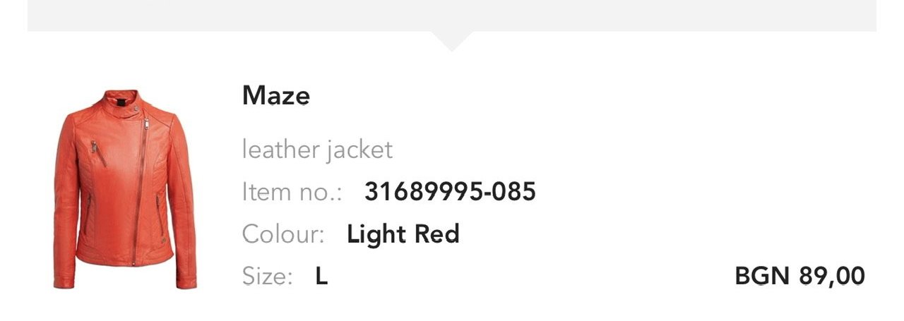 Харесвам якетата на MAZE, като качество, но нямаше в момента подходящ модел и размер за мен.