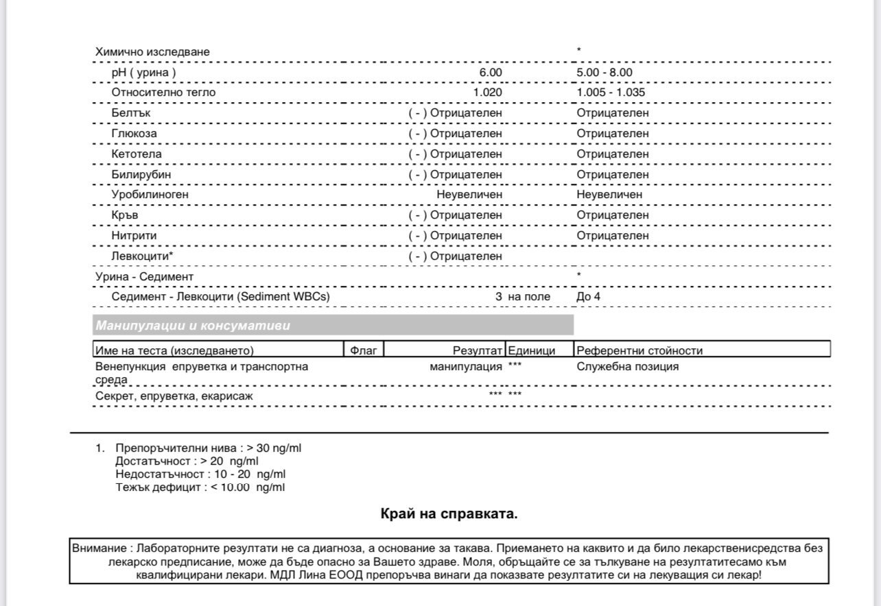 Име на теста (изследване)       Резултат     Единици   Референтни стойности   Метод