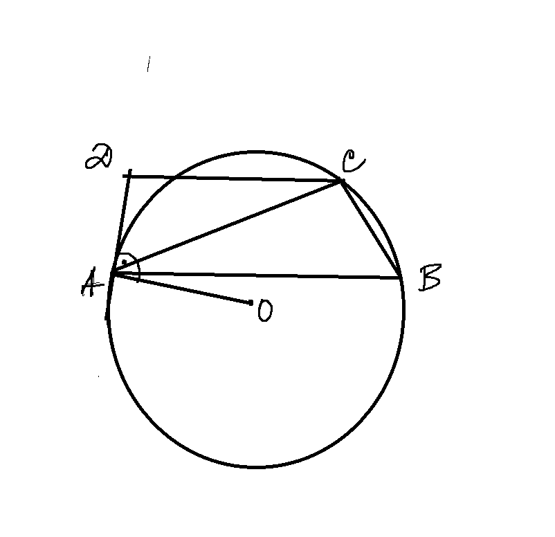 Затова се допълних, че AD трябва да е перпендикулярна на радиуса през т.А... Иначе задължително минава през А допирателната, няма как една допирателна да има две общо точки с окръжността, а по наличната част от условието, окръжността минава през А, В и С