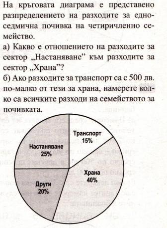 Тази от цитата я пуснах само като пример на Мама Ру, че шестокласните задачи с кръгови диаграми са си същите като седмокласните, но без замесени ъгли като съседни и връхни. Нея никой не я решавал.