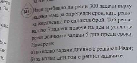 Как можем да решим задачата със системата уравнения за план и действителност на броя задачи на ден за u дни?