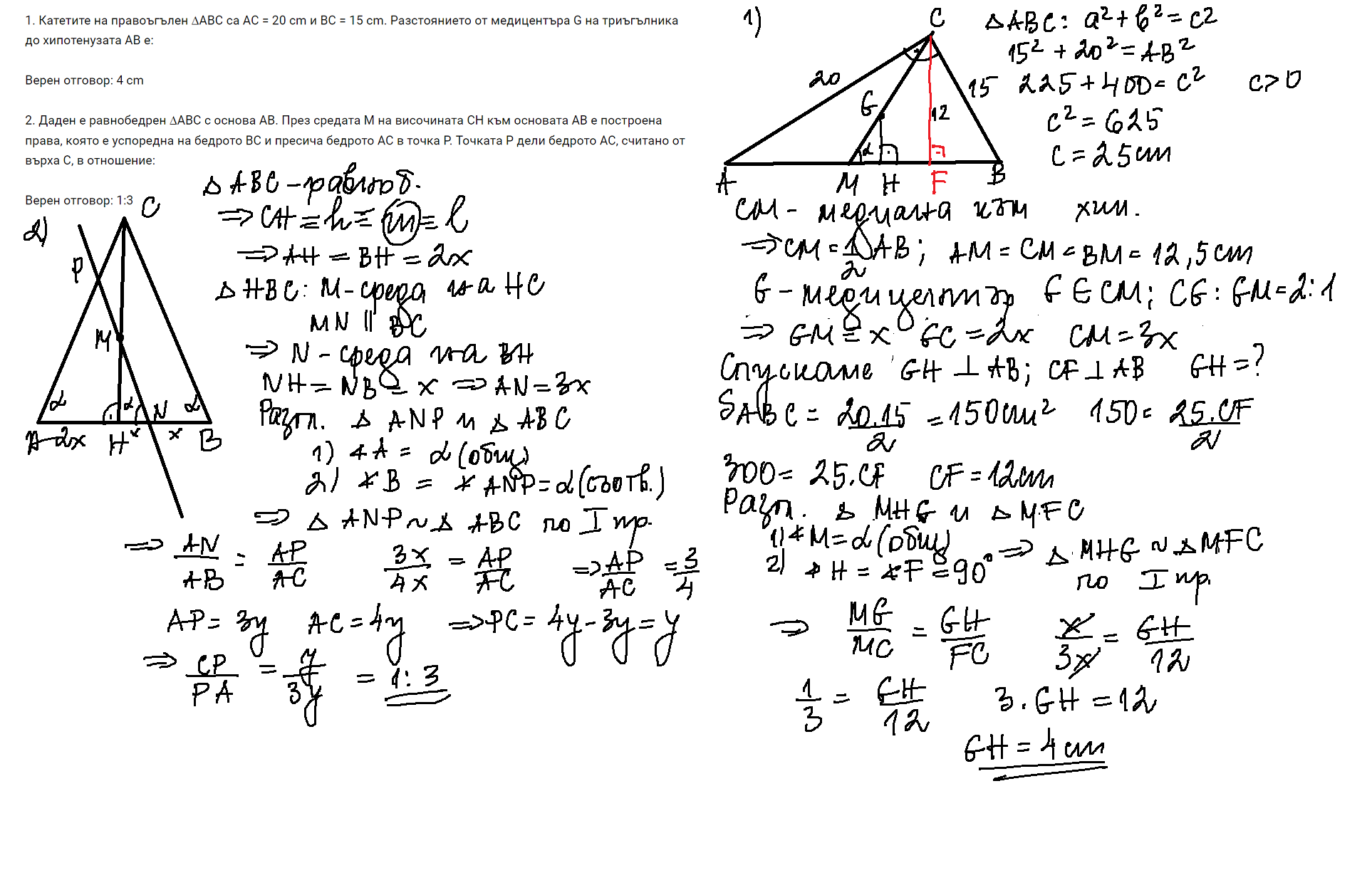Тъй като проекцията на върха Д е център на описаната около АBC окръжност, то ъглите, които околните ръбове сключват с основата са равни . Това е неясно също... Урока е за ъгъл между права и равнина.