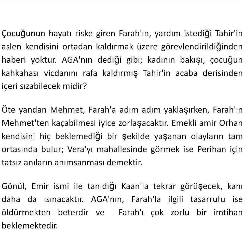 От друга страна, Мехмет; който се приближава все повече и повече до разрешаването на разследването на убийството и откриването на участието на Тахир и Фарах; ще бъде по-ангажиран в живота на Фара, отколкото си мисли. Фара, чиято съдба е свързана с невидими нишки с Тахир, ще се опита да оцелее за сина си, влизайки в конфликт със съвестта си и неочаквани чувства.