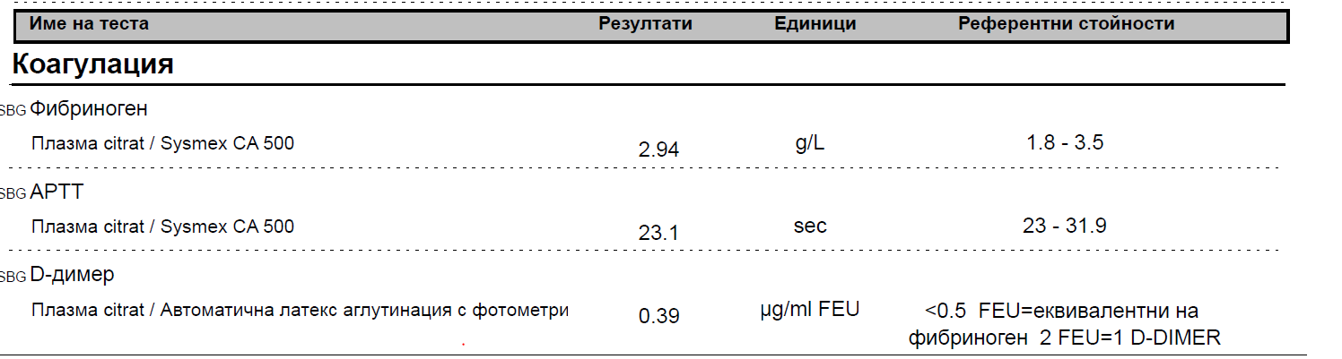 Момичета, днес пусках пакет коагуация, тъй като съм на Фраксипарин 0.4 ежедневно. Фибриногена и Д-димера са чудесни, но APTT е 23.1, при долна граница 23. Като сте били на долна граница, коригираха ли ви НМХ терапията? Русев, не вдига телефона, а час ми предлагат след време.