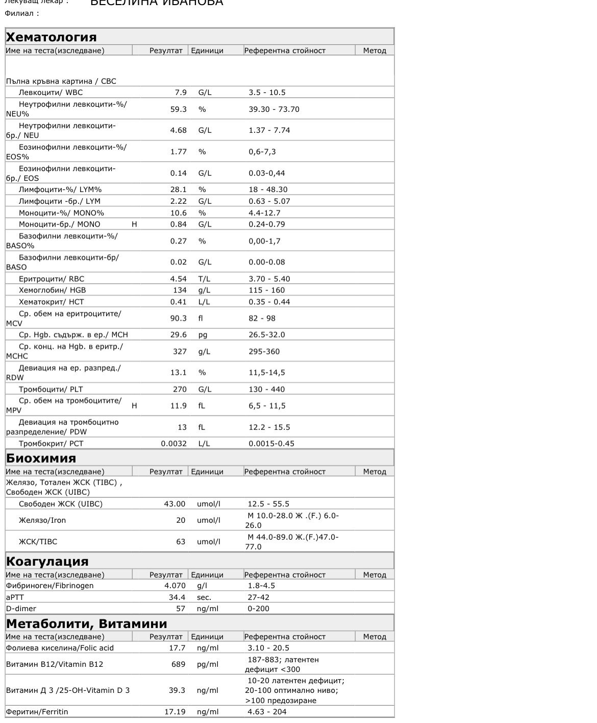 Добро утро дами, това са моите изследвания в 5г.с +5д на терапия с клексан 0,4 (правя си го вечер към 20:30) с витамини неофолик мета 2х1, вит В12 1х1 и вит Д спрей на Better You. Исках да се допитам и до вашето мнение днес имам консултация с хематолог.