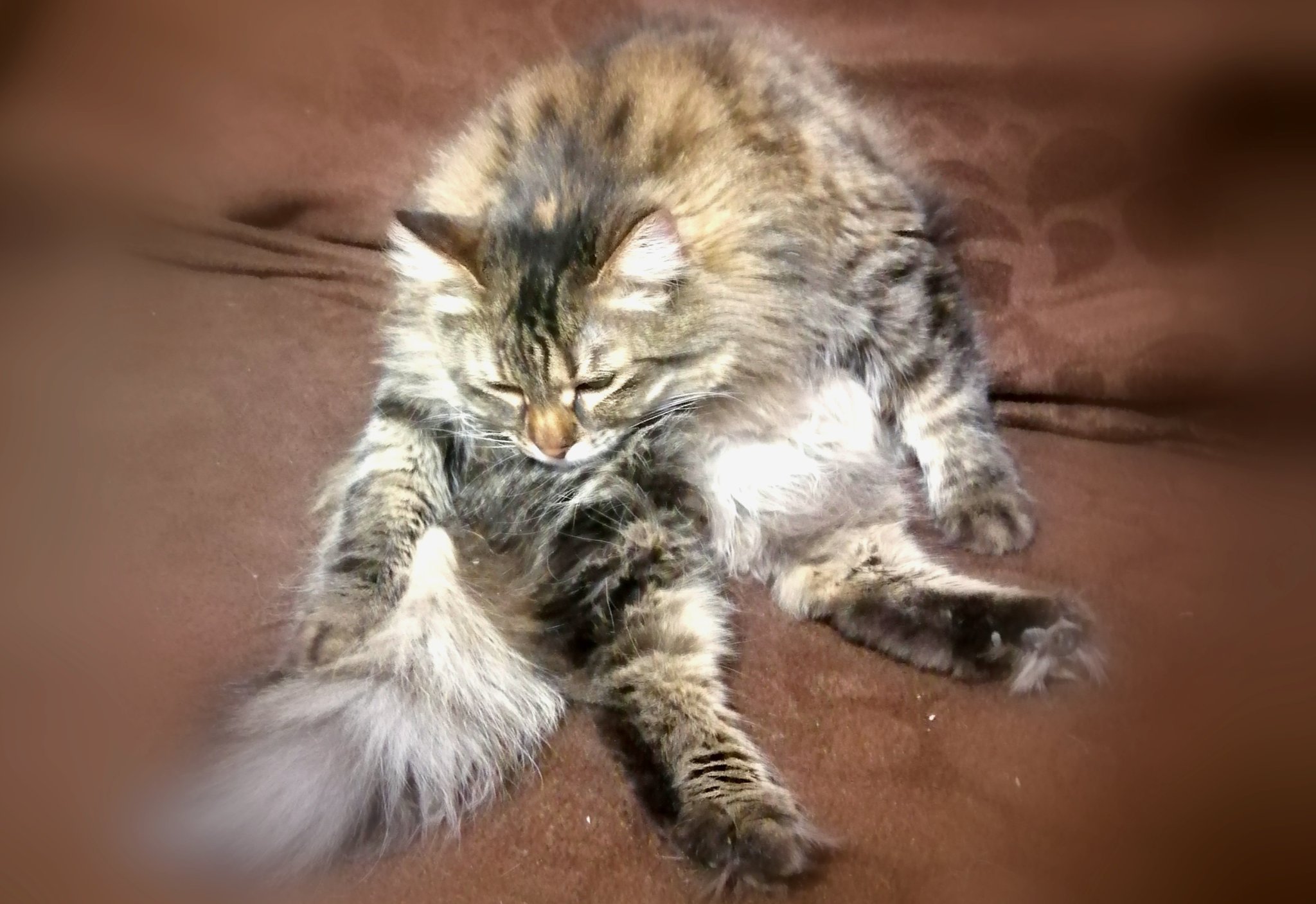 Онази вечер чувам доста странно мяукане, отидох да видя какво става, а нашият се лигавил на дядо си и в резултат беше пуснат на стола в ХОЛа.