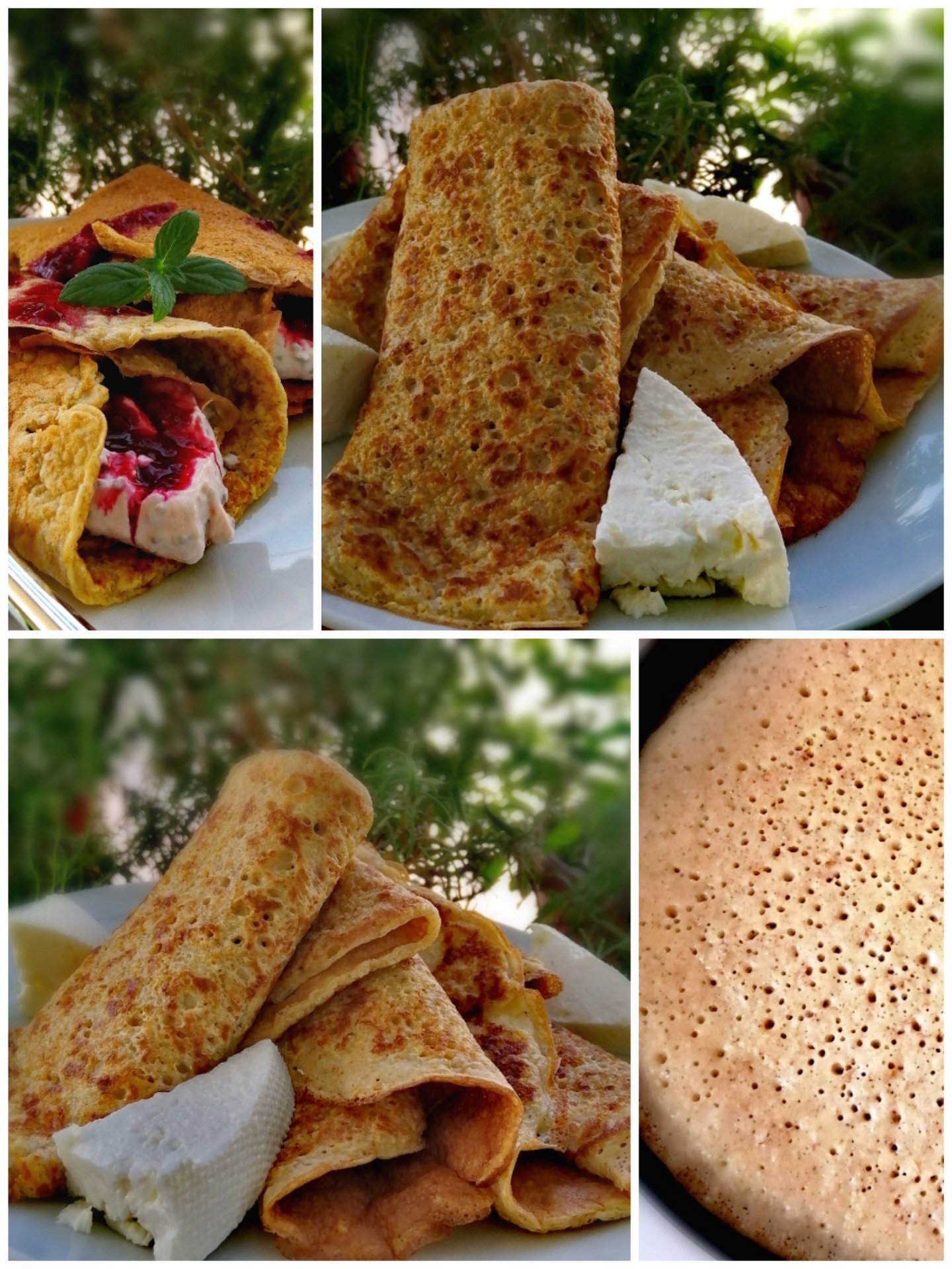 Джасте, аз ги правя по класическата рецепта за палачинки, само заменям брашното с овесено брашно, затова стават по-бели и гладки. Майка ми ги прави по твоята рецепта.