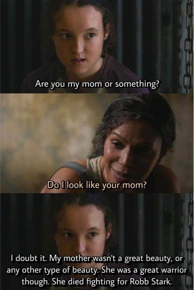 сериала си е собствено нещо, оригинална история, със собствени герой и собствен изграден уникален свят. И за мен такива аналогии са нелепи. Сериала е базиран на играта , а не на филм като "аз съм легенда".