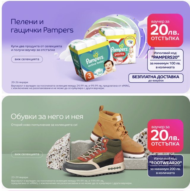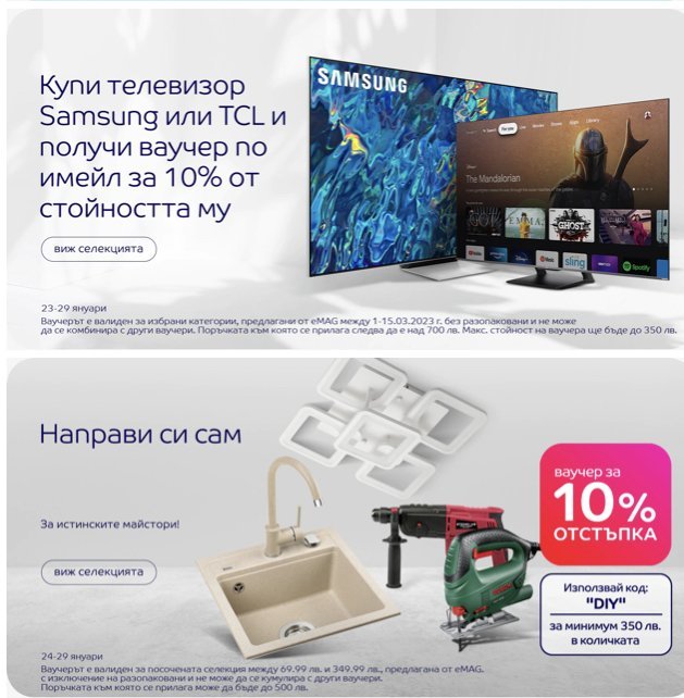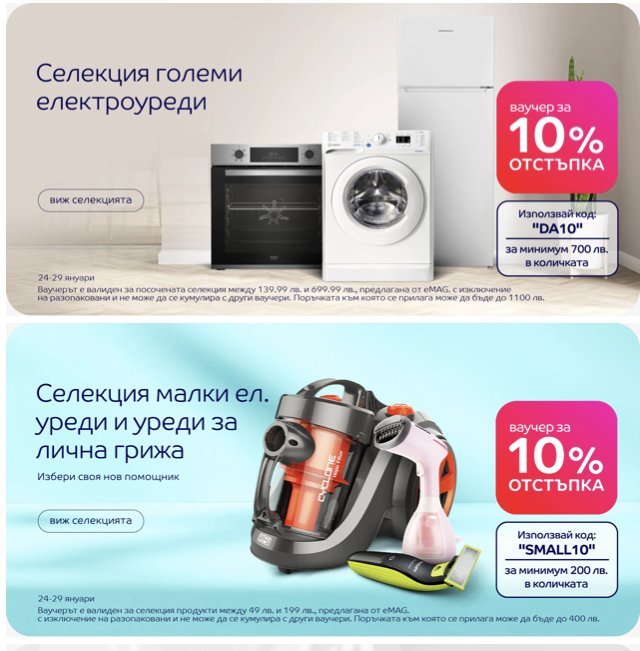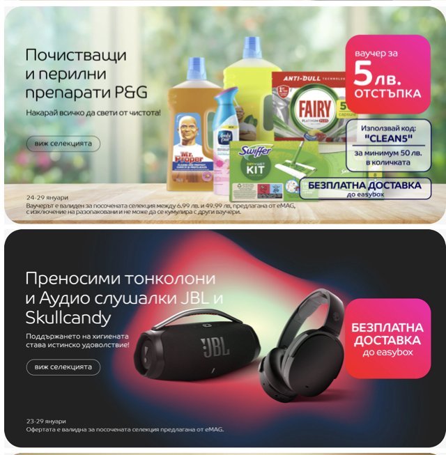 Пак да попитам някой с код за емаг за малки суми под 100лв. или безплатна доставка?