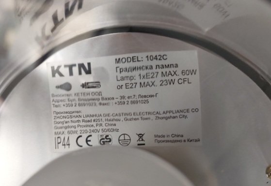 Живанк@, вчера забравих, извинявай. Ето снимка на етикета на лампата. Води се градинска.