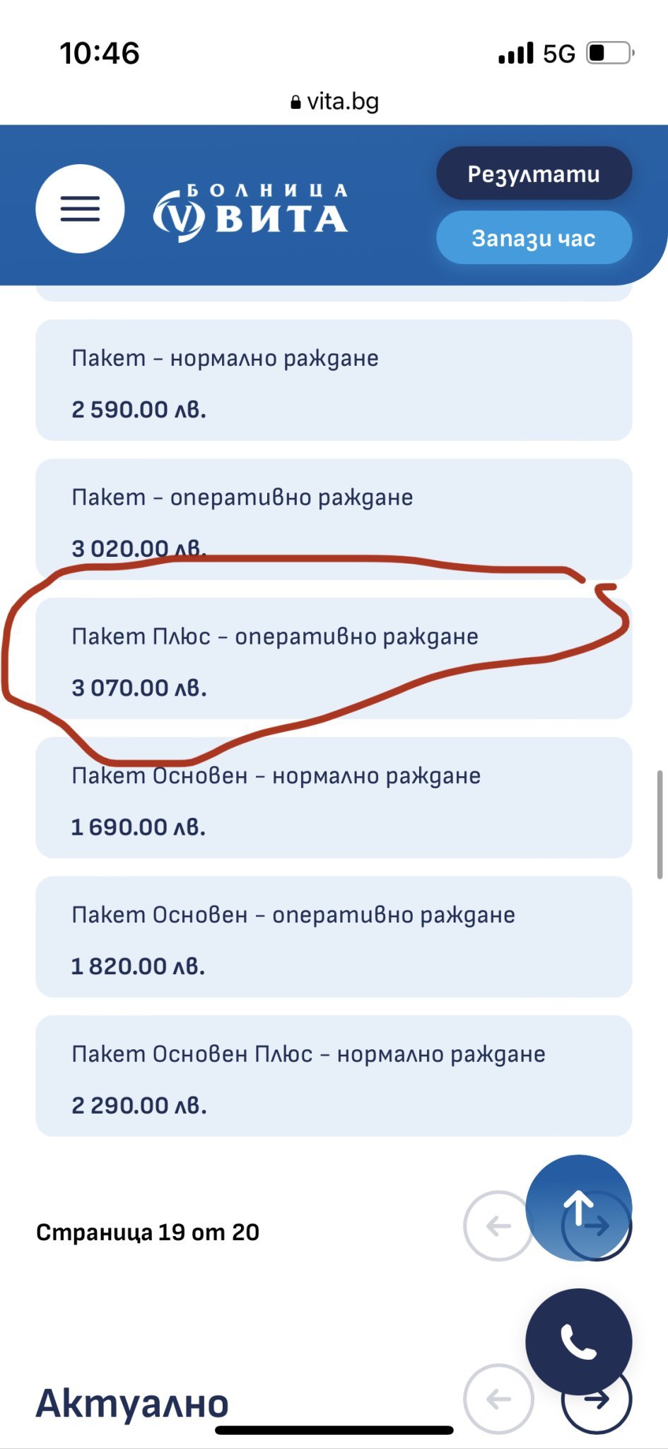 Бих искала да попитам към днешна дата знаете ли каква е цената за секцио във Вита с избор на екип за здравно осигурена ( намирам единствено за неосигурени лица цени) ?
