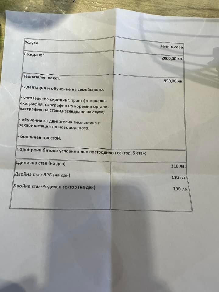 Неонаталният пакет е 950 лева. Нощувката в двойна стая в Родилен сектор е 190 на вечер. Ако сте секцио, тогава има още една предварителна нощувка във Високорискова бременност, която е 110 лева.