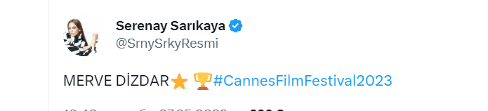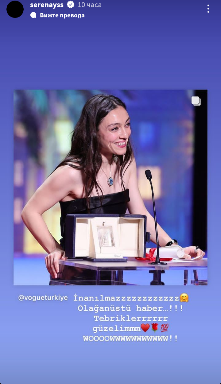 Серенай е поздравила Мерве Диздар за наградата на фестивала в Кан за най добра женска роля 👏
