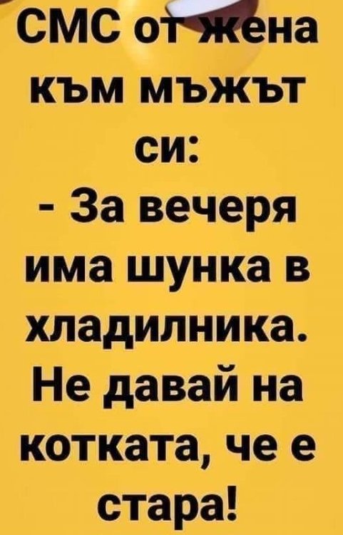 - НЕ . ВСЪЩНОСТ БЕШЕ ДОШЪЛ ДА КУПИ ТАМПОНИ ЗА ЖЕНА СИ, БИЛА В ЦИКЪЛ ... И аз му казах, че така и така уикенда му е прецакан, защо да не вземе да отиде на риба... Simple Smile Simple Smile 😊