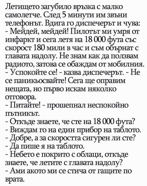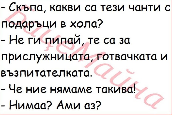 - И аз така му казах, но той се ядоса много, разкрещя се, скъса списанието и ме изгони гола от къщи. И мъжете също изгони...