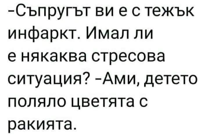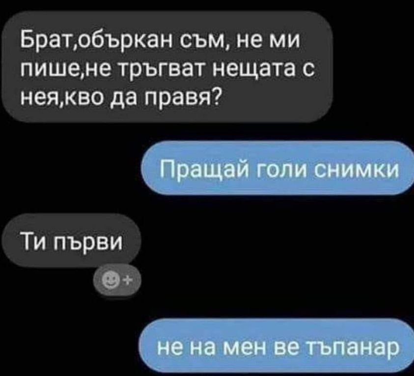 Нашият, видимо ошашавен, но все още настръхнал, пита: