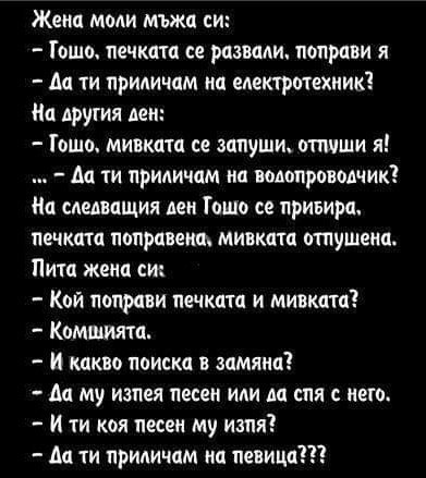 59. Невестата ти на мен да се качи! Не виждаш ли, че човекът има проблем с данъчни и акцизни.