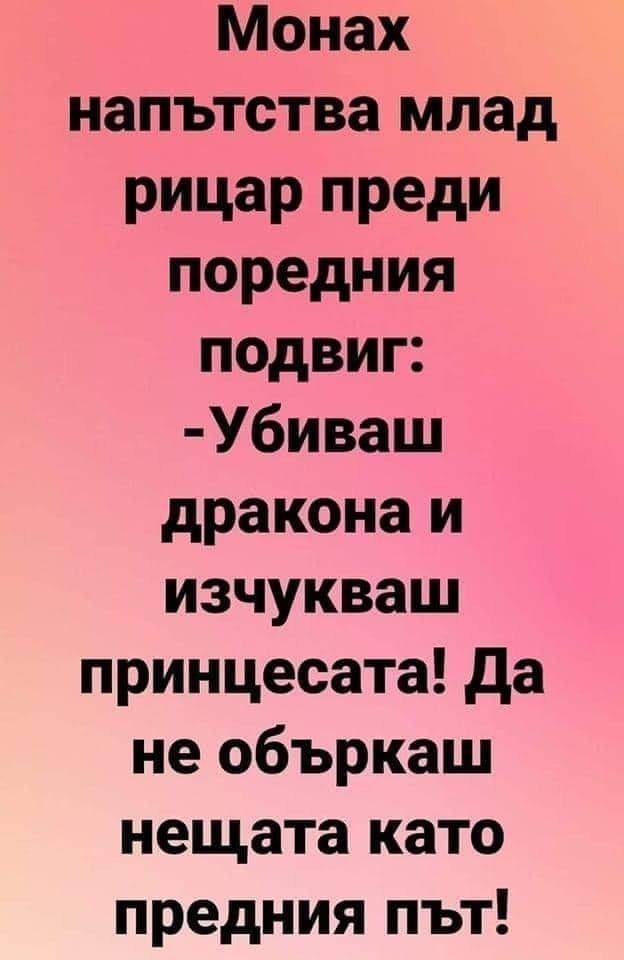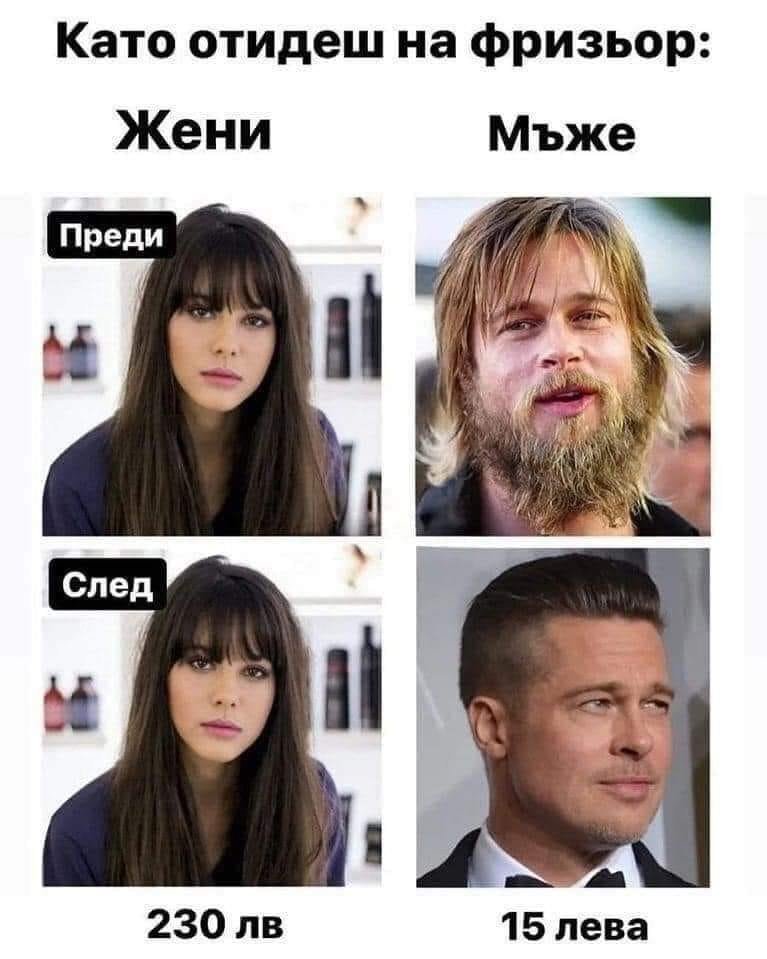 Миме, а пък моят отиде за риба и цял ден не си вдига телефона! Сигурно си е хванал любовница! - Еее, недей така песимистично - може просто да се е удавил!
