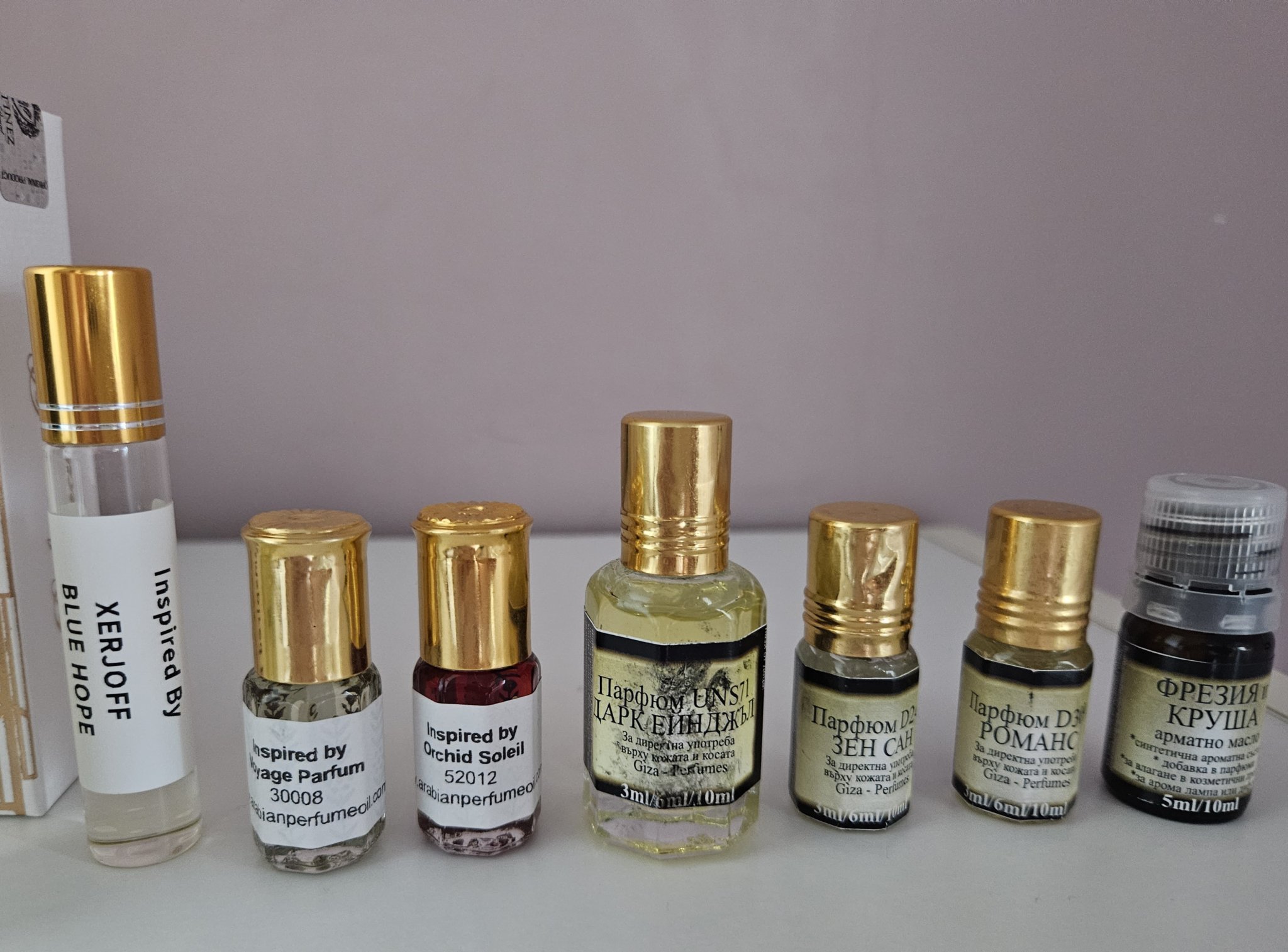 Здравейте, разменям следните масла, като първите 3 са закупени от Англия, другите са от Гиза: