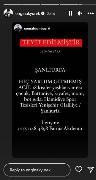 Научихме, че материалите за палатки и другите помощни средства, които трябва да стигнат до нас днес, се съхраняват в пристанище Караташ от офиса на областния управител на Караташ. Трудно ни е да разберем тези пречки, когато лежим в парника/зеленчуковата оранжерия, вместо сами да построим палатка, за да поберем повече хора. Опитваме се да контролираме нервите си. Нашият интернет е претоварен или изключен. Ако можете да се свържете с Öğuzhan Uğur, моля, пишете, може би ще се формира обществено мнение. Ако има развитие, ако нашите материали са на път, ще ви информираме отново.