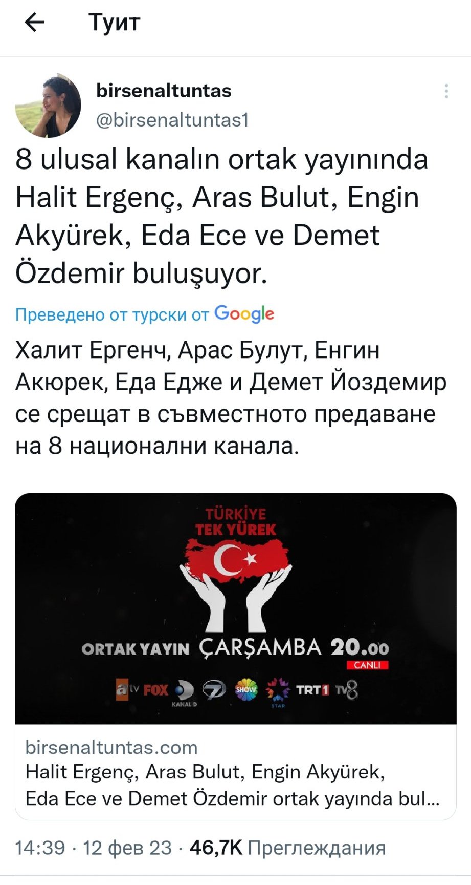 Съобщението на канал Fox TV за съвместното излъчване с 8-те национални канала на Турция