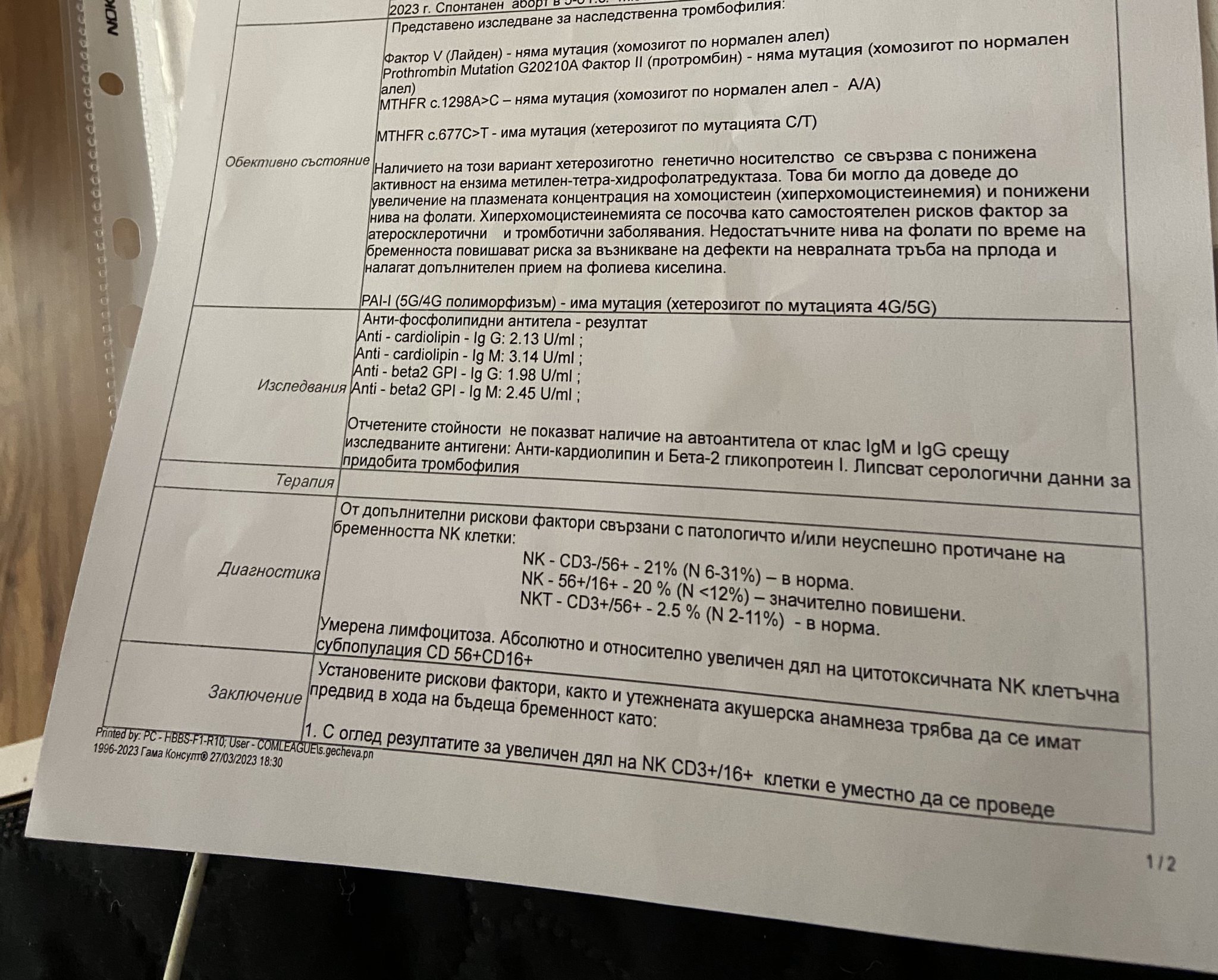 След като бъде установена хетерозиготна мутация при тромбофилия, препоръчително е да се консултирате с хематолог или специалист по тромбофилия. Обичайната терапия включва профилактика с аспирин протект и/или нискомолекулен хепарин (като НМХ - Клексан, Фраксипарин) по време на бременност. Важно е да се проследява кръвният поток към плода от ранна бременност и да се извършват редовни изследвания за кръвосъсирване. Допълнителни тестове като анти-Ха и други може да са необходими за определяне на подходящата терапия.