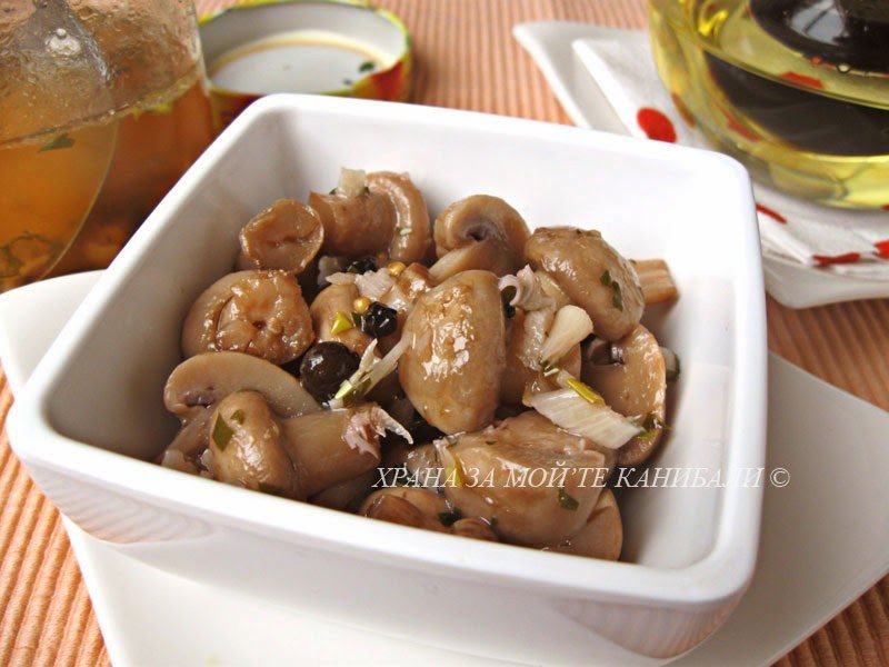 И мариновани гъби добавям, ако ти писне да ги готвиш. Чудесно мезе и  заготовка към салати са https://pep-4o.blogspot.com/2010/01/15-1.html?m=0